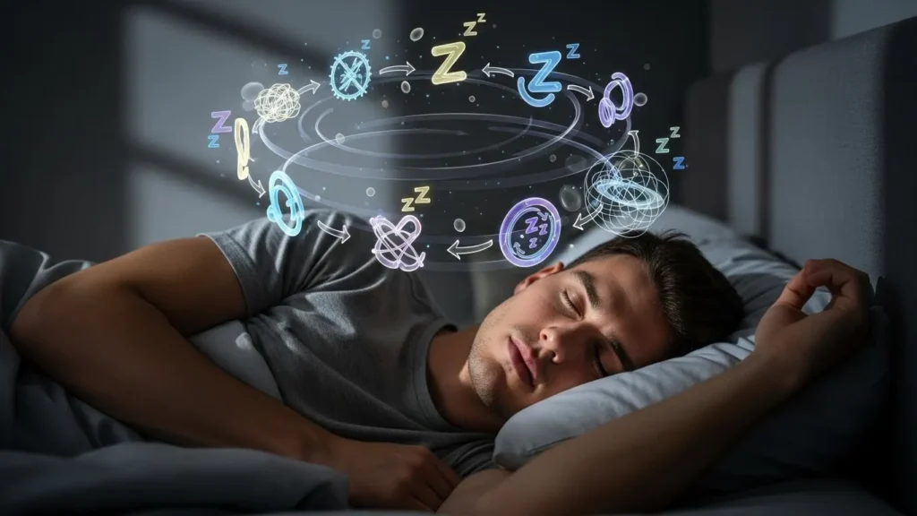 Sleep is organized into repeating cycles that move through different stages across the night. Each cycle lasts roughly 90 minutes and includes lighter sleep, deeper sleep, and periods of REM sleep. Middle-of-the-night awakenings, including those around 3 AM, are closely linked to how these cycles naturally unfold.